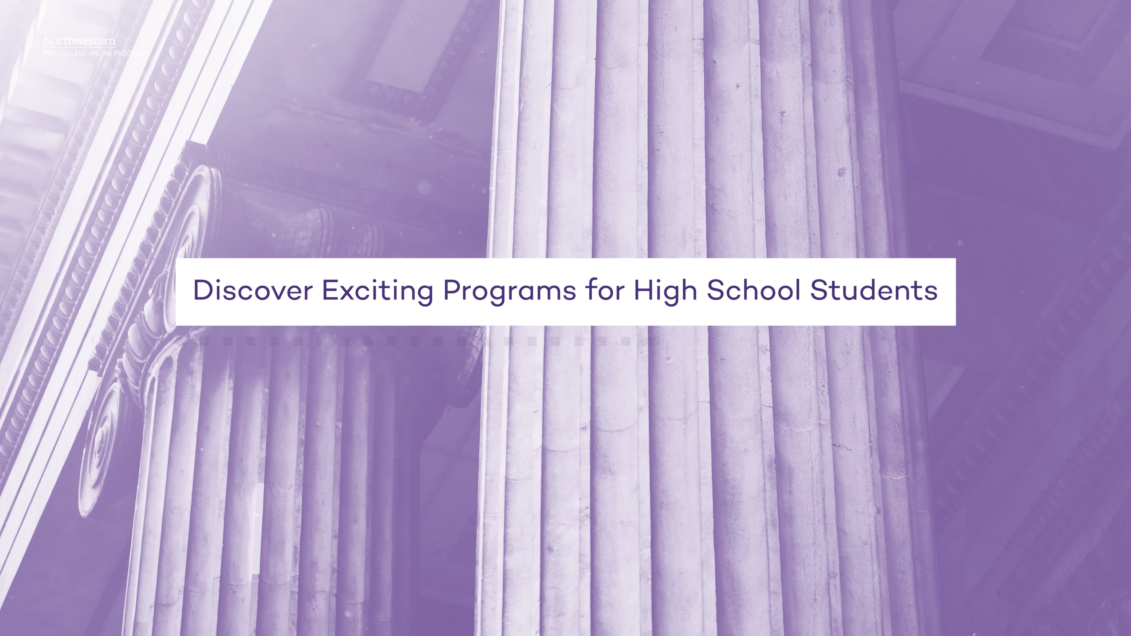 Studying with Northwestern means being part of an innovative and collaborative community that excels at transforming society, growing leaders, and pursuing excellence. Our Pre-College Online Program is no exception. Designed for motivated students 13 and older, our online courses are taught by our renowned faculty and feature dynamic video lessons and interactive tools. Be guided by mentors; and enjoy the flexible, online structure that allows you to take multiple courses to discover a variety of academic areas of interest.